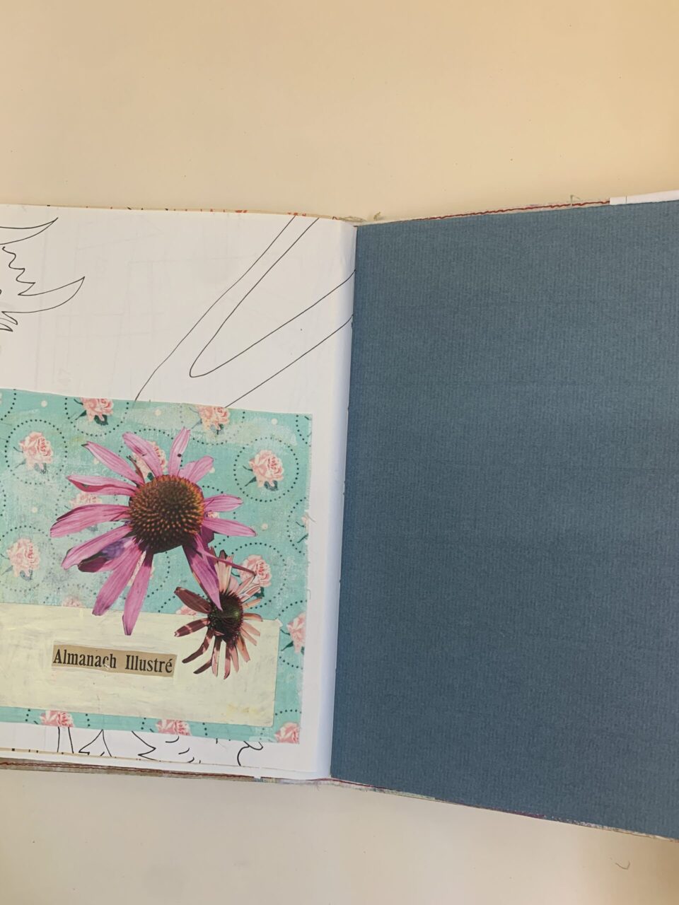 Journal aus unterschiedlichen Vintage-Papieren. Umschlag Mixed Media/Collage von Regula Stucki, Innenseiten mit Collagen und Zusatzelementen.