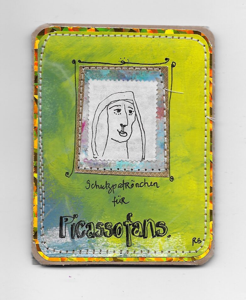 Miniatürchen, Collage/Mixed Media, 9 x 7 cm, 2021, Original aufgenäht auf Verpackungskarton
